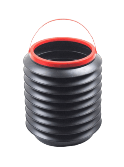 Our trash bin features a built-in carrying handle and is crafted from plastic throughout. An accordion-style body allows for easy compact collapsibility for storage.