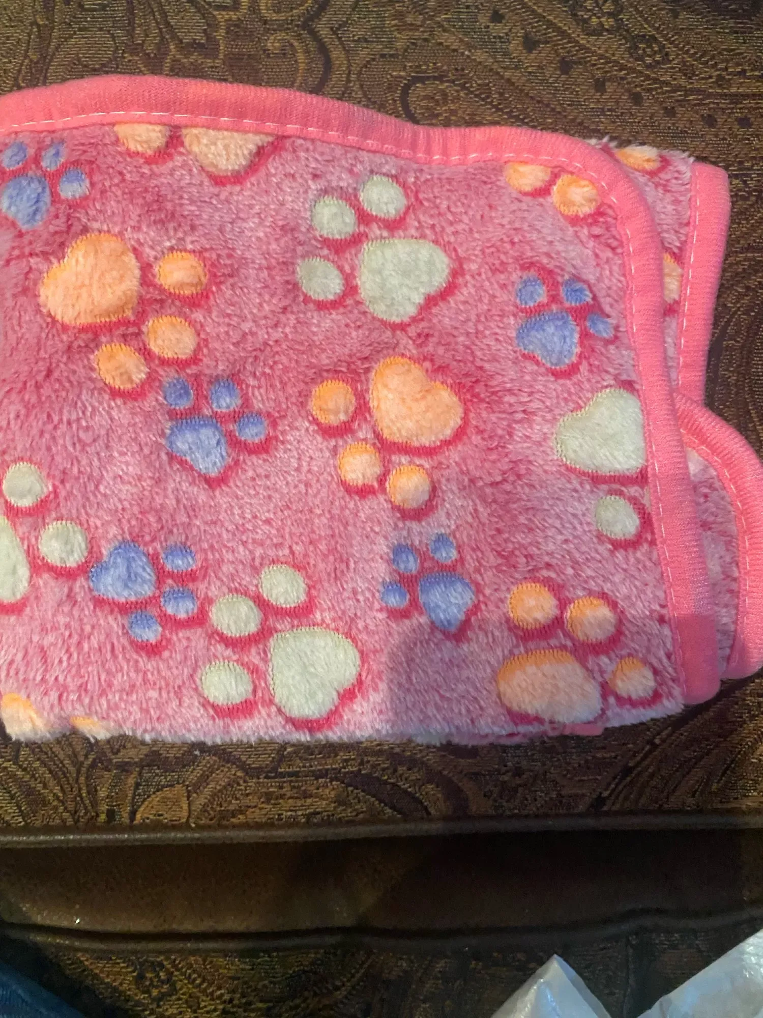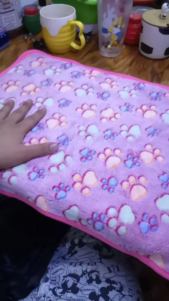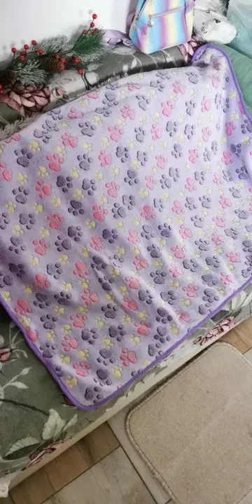 Gifted it to our neighbor’s dog, Duke, for Christmas. It’s super soft with adorable paw prints, perfect for snuggling.